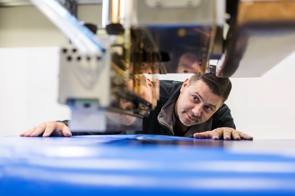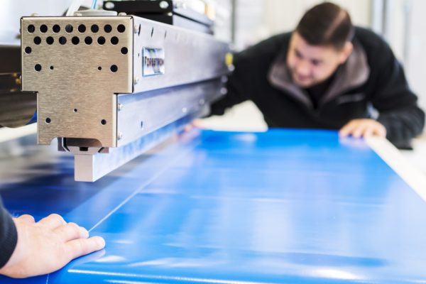 The machine line also includes a digital cutting machine from Zünd, a roll slitter from Robart and a Carmo eyelet machine. The complete machine line makes it possible for our customers and partners to try out the most suitable machine for a certain product.